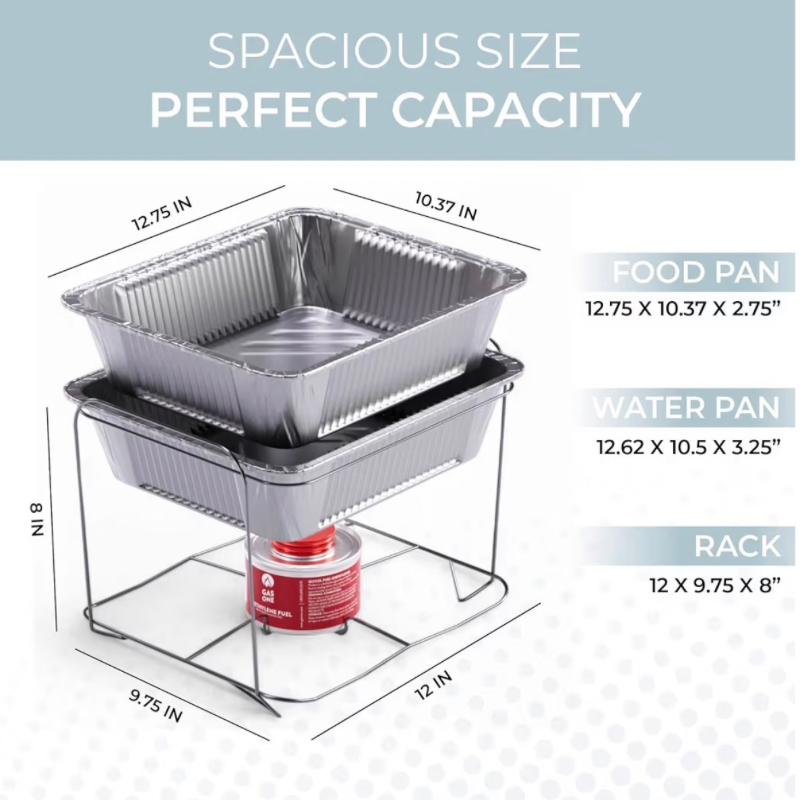 Serve and maintain hot food effortlessly with our Disposable Chafing Dish Buffet Set, perfect for weddings, parties, corporate events, and family gatherings. This complete buffet solution helps keep food at the ideal serving temperature while creating a clean, professional presentation. Designed for convenience and efficiency, this set is ideal for hosts, caterers, and event planners who want a polished buffet setup without the hassle of heavy equipment or extensive cleanup.