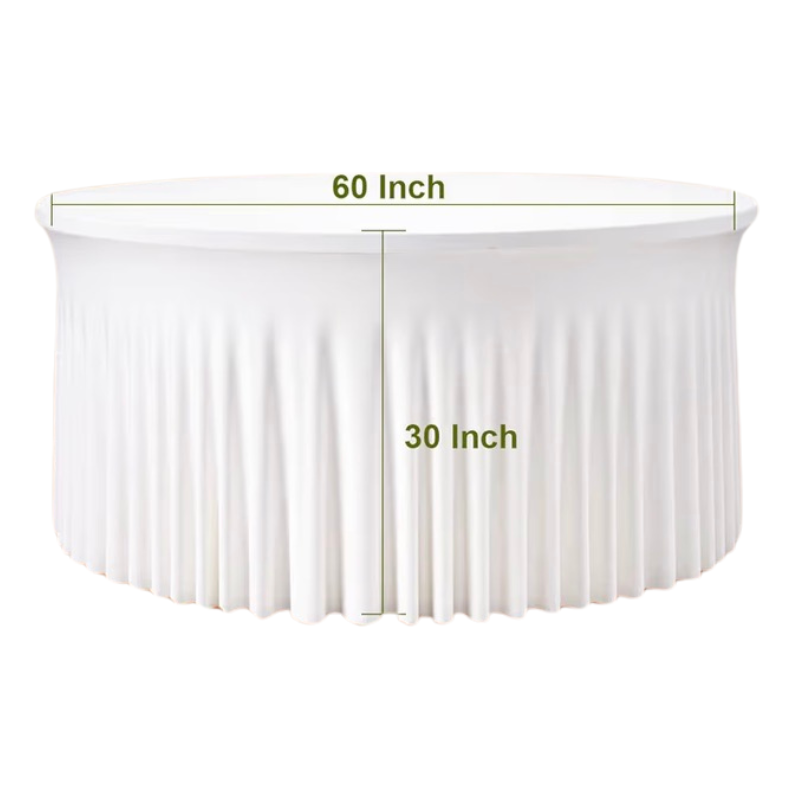 Elevate your event look with our white stretch spandex round tablecloth designed for a clean modern finish. This fitted cover hugs the table for a smooth wrinkle resistant appearance and stays in place with reinforced leg pockets. Perfect for weddings birthdays graduations corporate events church functions dessert tables and vendor displays.